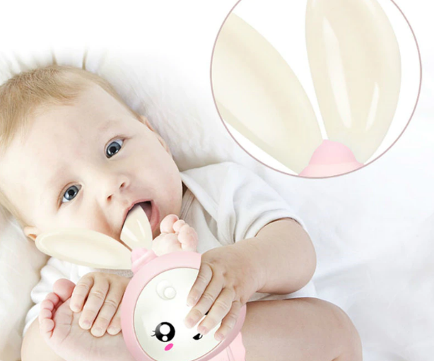 Totalmente atóxico e sem cheiro. As orelhas são feitas de silicone alimentício ótimos para bebês nas fase de crescimento dos dentinhos.